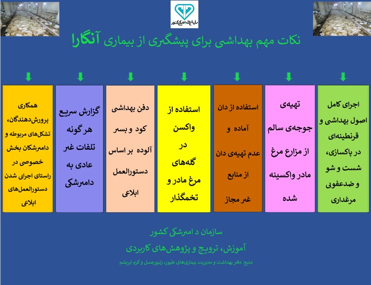 اینفوگرافیک... نکات مهم بهداشتی بمنظور پیشگیری از بیماری آنگارا در جمعیت طیور کپی لینک کوتاه گروه خبری : هشدارهای بهداشتی,آموزش و ترویج کد خبر : 290826 کلمات کلیدی