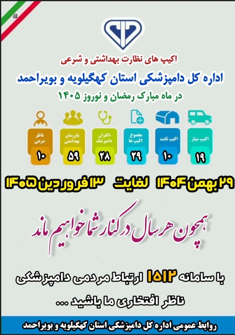 اکیپ های نظارت بهداشتی و شرعی دامپزشکی کهگیلویه وبویراحمد در ماه مبارک رمضان و نوروز 1405